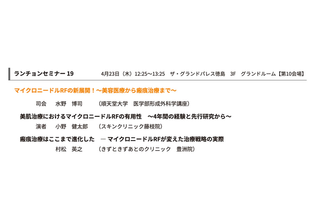 2026年4月22〜24日にかけて徳島県にて開催された第69回日本形成外科学会・学術集会において、当医療法人理事長の小野健太郎がランチョンセミナーに登壇いたしました。