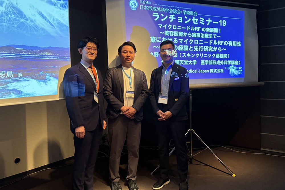 共同演者の村松英之先生(きずときずあとのクリニック豊洲院)(左)、Jeisys Medical Japanのチョン・サンジュン代表取締役と