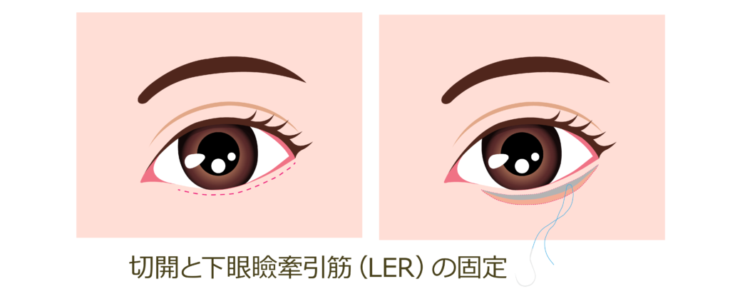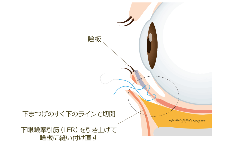 目の下のしわ、たるみ、シワ、クマを自然に目立たせなくする手術の方法です。