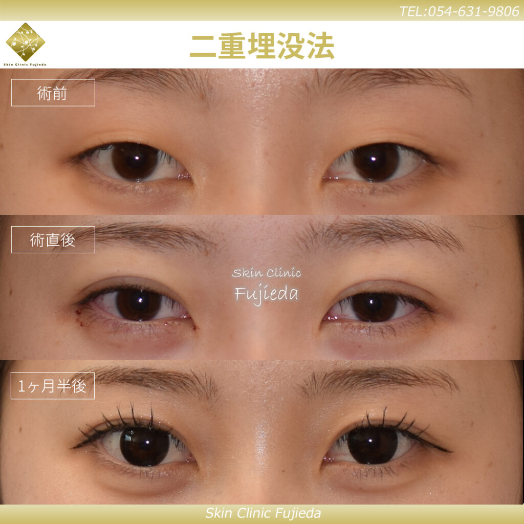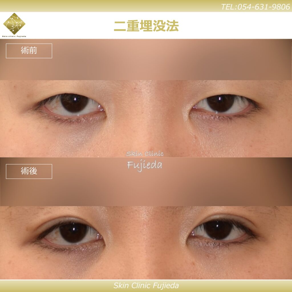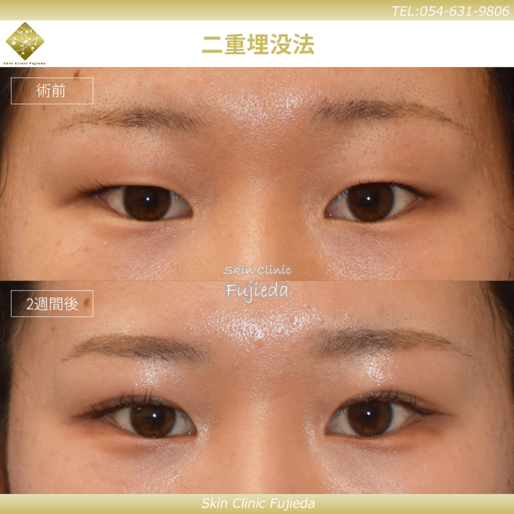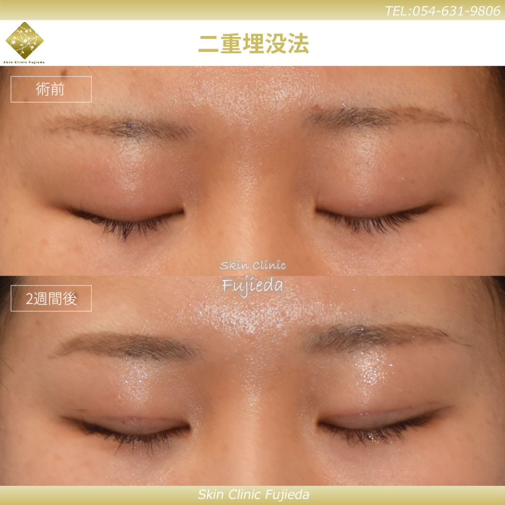二重埋没法の症例写真の紹介です。こちらの症例は2本3点留めになります。