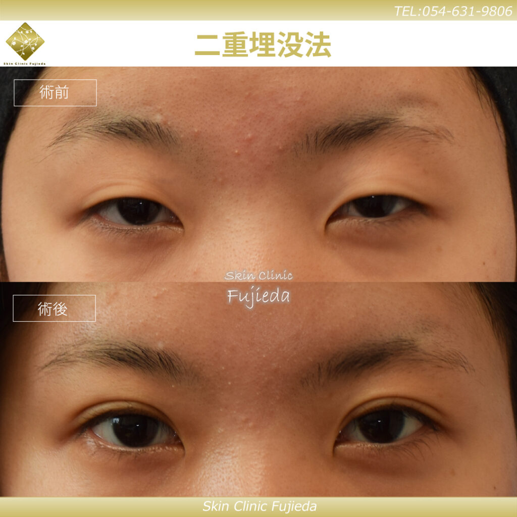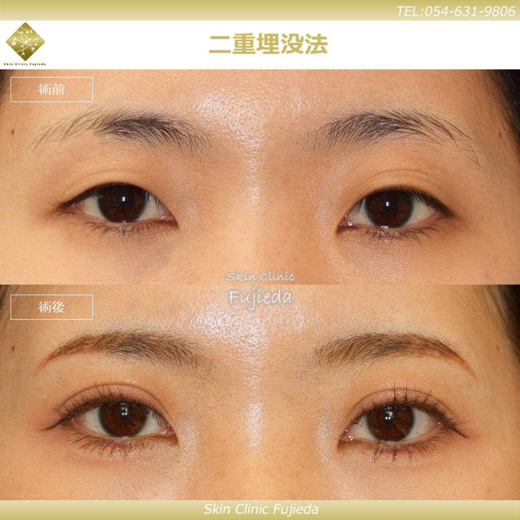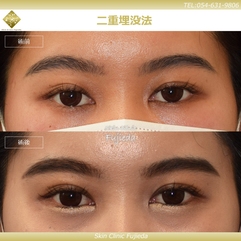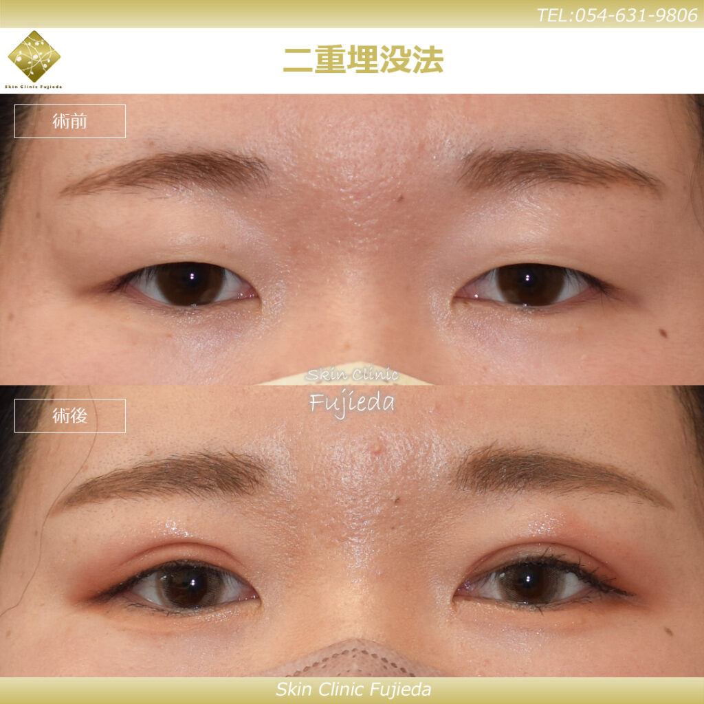 二重埋没法の症例写真の紹介です。こちらの症例は2本3点留めになります。