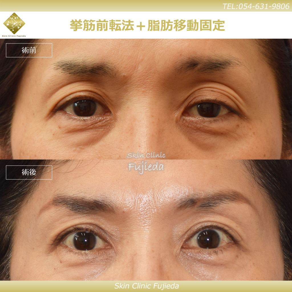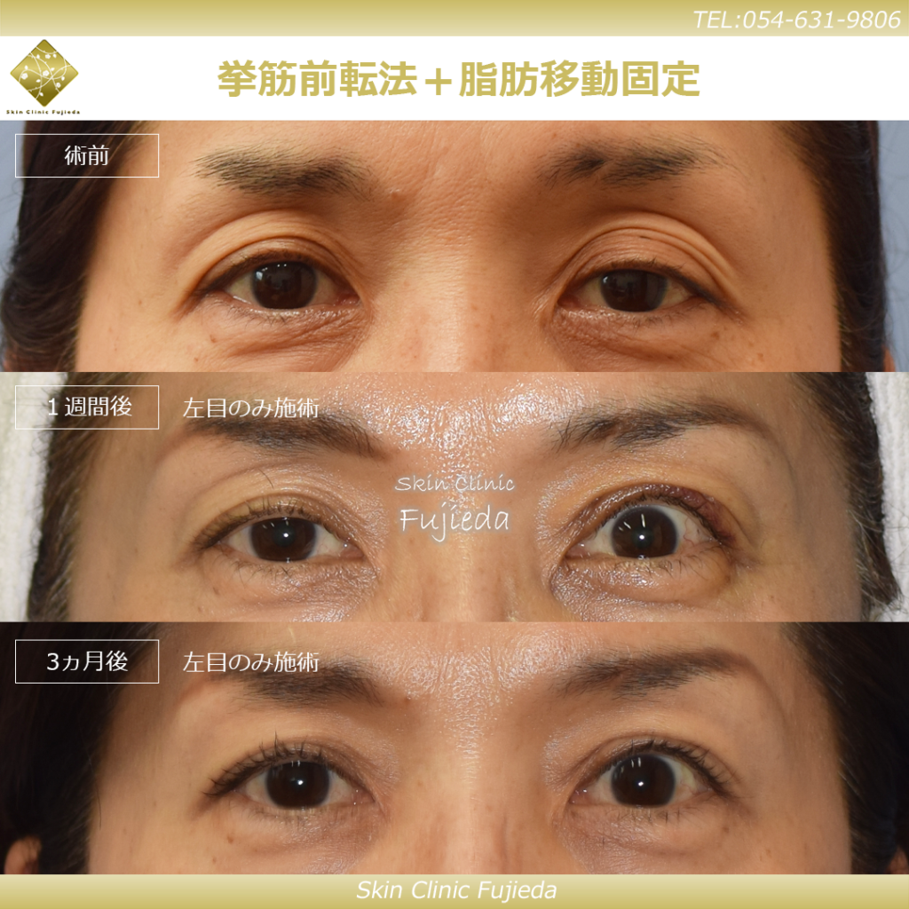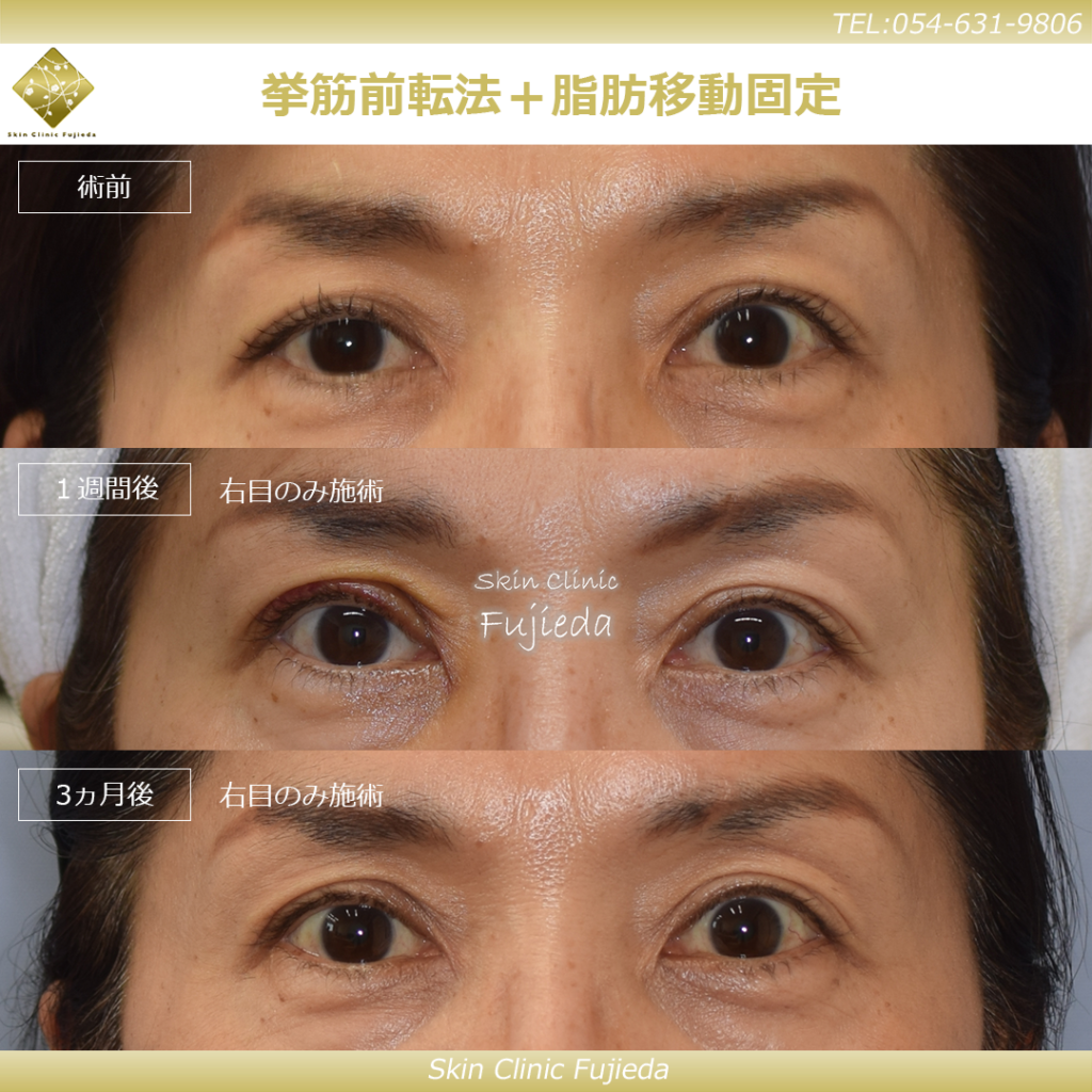 挙筋前転法+脂肪移動固定術(眼瞼下垂併用全切開)