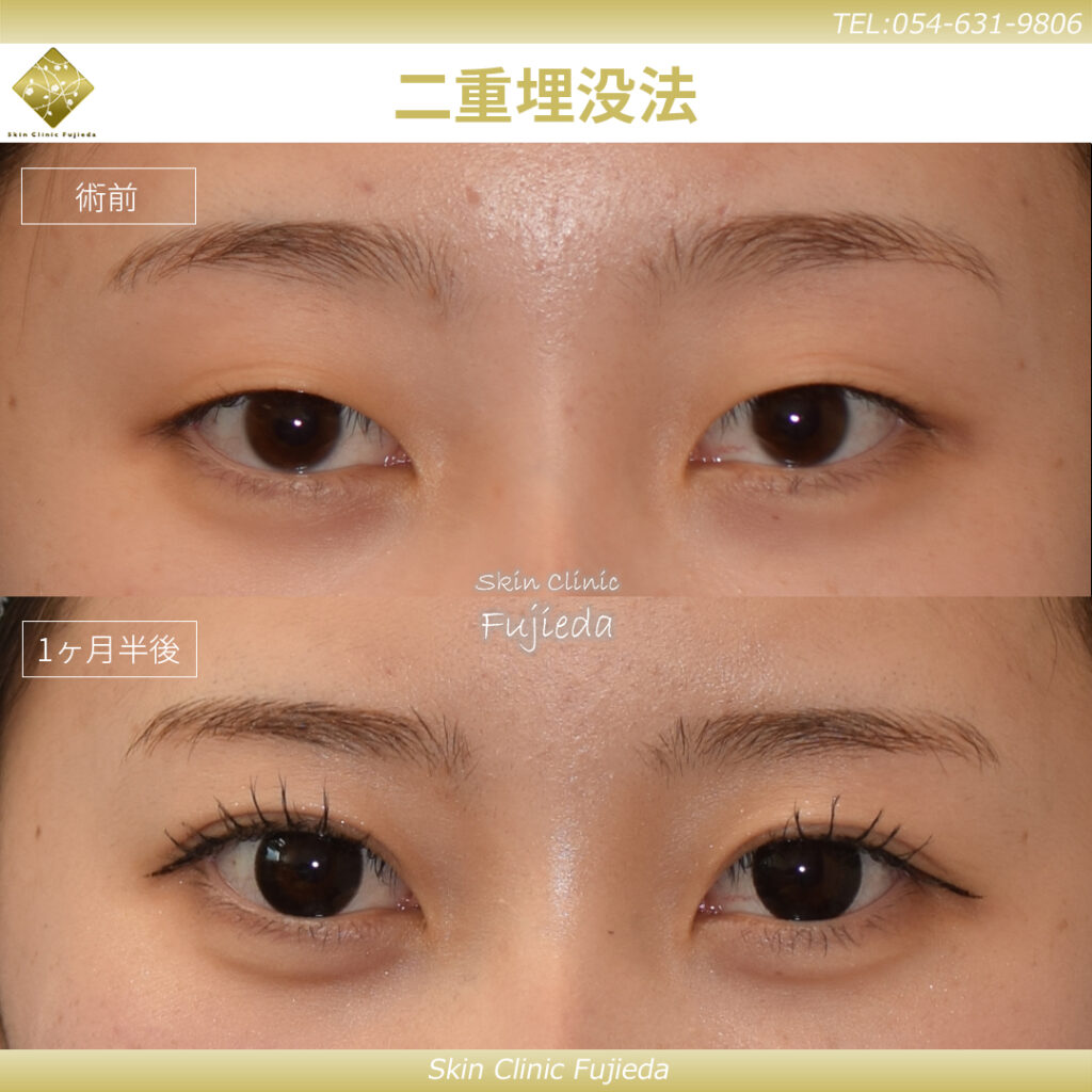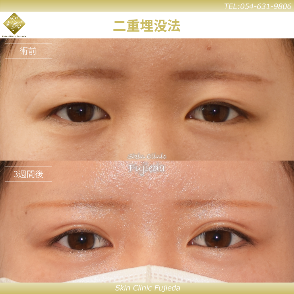 二重埋没法の症例写真の紹介です。こちらの症例は2本3点留めになります。
