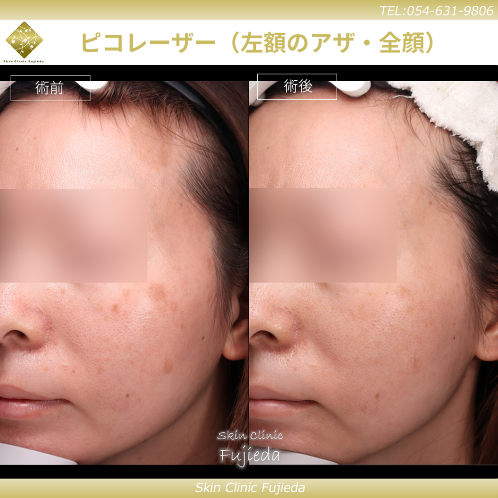 左前額のアザはキレイになり、顔全体のシミも改善されています。