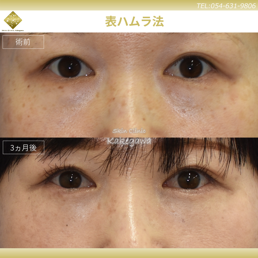 ヒアルロン酸治療では決して再現できない、本来の下眼瞼の美しい立体感を取り戻せるのがハムラ法です。