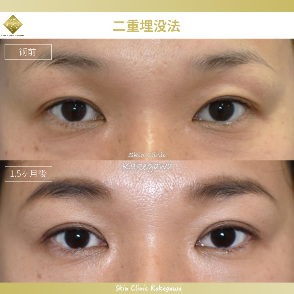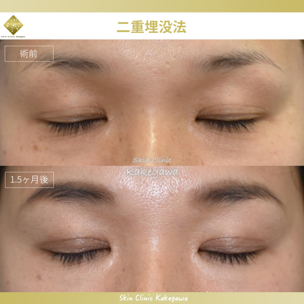二重埋没法を行ったの患者様の症例写真です。2本3点留めになります。
